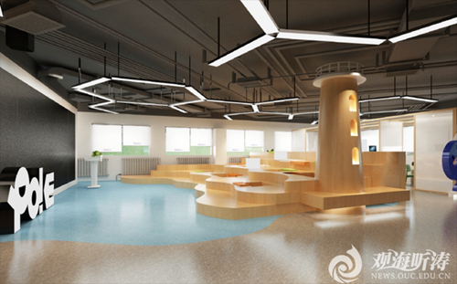 POKE空間全稱為創(chuàng)新創(chuàng)業(yè)模擬實(shí)訓(xùn)中心,位于中國海洋大學(xué)管理學(xué)院負(fù)一樓,約600平方米,由校內(nèi)6家單位和校外三家企業(yè)集資共建,歷經(jīng)兩年落成,是教育部“三全育人”綜合改革試點(diǎn)重點(diǎn)建設(shè)的教育載體,是在數(shù)智時(shí)代背景下集思政教育、專業(yè)教育和雙創(chuàng)教育為一體的多場景智慧育人空間。取名“POKE”,寓意“戳一下,激發(fā)學(xué)生的創(chuàng)新靈感,讓夢想破殼而生”?臻g設(shè)有全球路演大廳、頭腦風(fēng)暴室、電商直播室、團(tuán)隊(duì)建設(shè)室、創(chuàng)意孵化區(qū)、項(xiàng)目研討區(qū)6個(gè)部分,涵蓋了大學(xué)生雙創(chuàng)項(xiàng)目從零到一的各個(gè)環(huán)節(jié),每個(gè)部分均由相關(guān)專業(yè)根據(jù)專業(yè)建設(shè)需要與企業(yè)產(chǎn)教融合共建,既是實(shí)驗(yàn)室也是實(shí)踐地,一二課堂在空間載體上融合。專業(yè)教師和輔導(dǎo)員依托“踐商研學(xué)”四大專業(yè)賽事,在空間內(nèi)協(xié)同授課指導(dǎo)參賽,思政、專業(yè)、雙創(chuàng)教育一體融合,一二課堂在教育內(nèi)容上融合。引導(dǎo)全校及周邊高校的雙創(chuàng)項(xiàng)目展示交流,鼓勵(lì)管理學(xué)院學(xué)生參與到各個(gè)項(xiàng)目中,提升學(xué)校雙創(chuàng)項(xiàng)目的整體質(zhì)量,為學(xué)校培養(yǎng)敢闖會(huì)創(chuàng)的時(shí)代新人提供管理支撐。