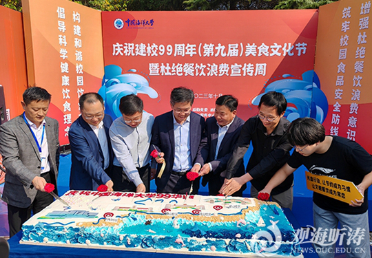 中國海洋大學(xué)后勤黨委、后勤保障處有關(guān)負(fù)責(zé)人、校友代表、飲食服務(wù)中心退休職工代表、與學(xué)校同生日的在校師生代表等參加美食文化節(jié)開幕式。