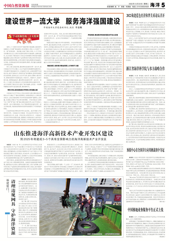 編者按:黨的二十大報(bào)告首次把教育、科技、人才進(jìn)行“三位一體”統(tǒng)籌安排、一體部署,反映了教育、科技、人才工作在全面建設(shè)社會(huì)主義現(xiàn)代化國(guó)家進(jìn)程中的基礎(chǔ)性、戰(zhàn)略性地位,為中國(guó)海洋大學(xué)加快建設(shè)特色顯著的世界一流大學(xué)指明了前進(jìn)方向、提供了根本遵循。日前出版的《中國(guó)自然資源報(bào)》“學(xué)習(xí)貫徹黨的二十大精神大家談”欄目刊發(fā)中國(guó)海洋大學(xué)校長(zhǎng)于志剛的署名文章《建設(shè)世界一流大學(xué)服務(wù)海洋強(qiáng)國(guó)建設(shè)》。文章指出,中國(guó)海洋大學(xué)堅(jiān)持立德樹人根本任務(wù),把服務(wù)國(guó)家作為最高追求,為黨育人、為國(guó)育才,扎根中國(guó)大地、深耕蔚藍(lán)海洋,加快建設(shè)特色顯著的世界一流大學(xué),為全面建設(shè)社會(huì)主義現(xiàn)代化國(guó)家、實(shí)現(xiàn)中華民族偉大復(fù)興作出海大人應(yīng)有的貢獻(xiàn)!全文如下: