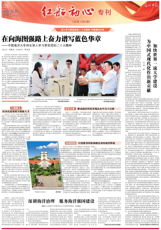 | 《光明日報》整版聚焦:中國海洋大學(xué)深入學(xué)習(xí)貫徹黨的二十大精神 |