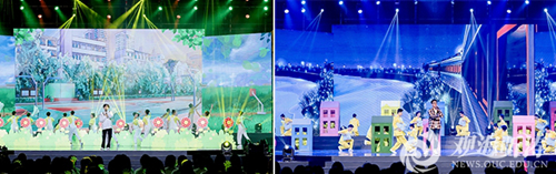 大學(xué)生藝術(shù)團(tuán)學(xué)生在中國大學(xué)生電視節(jié)開幕式現(xiàn)場演唱《新生》《山海》