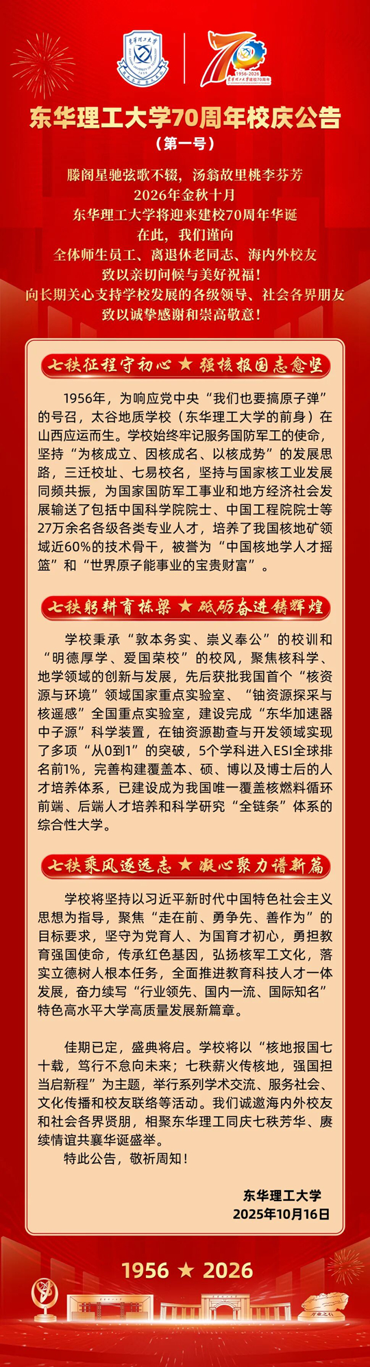 東華理工大學(xué)70周年校慶公告(第一號(hào))