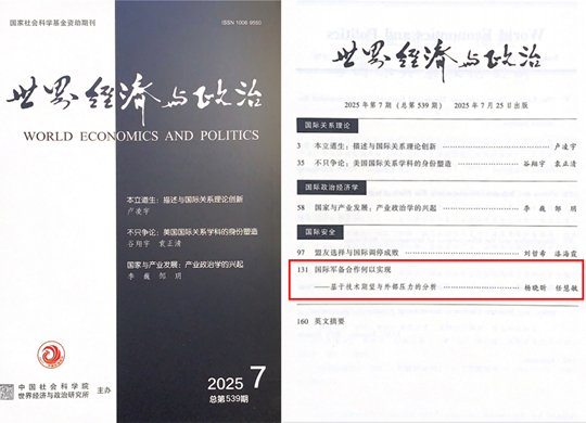 近日,中國海洋大學國際事務與公共管理學院講師楊曉昕與碩士研究生任慧敏撰寫的論文《國際軍備合作何以實現(xiàn)——基于技術期望與外部壓力的分析》在國內頂級政治學學術期刊《世界經(jīng)濟與政治》2025年第7期發(fā)表。