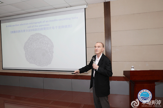 蘭迪•謝克曼簡(jiǎn)要介紹了目前的研究方向。他表示非常重視與中國(guó)海洋大學(xué)的交流合作,希望通過此次來訪和開展講座,激發(fā)更多海大師生對(duì)分子生物學(xué)及相關(guān)領(lǐng)域的研究熱情,為雙方今后在更多領(lǐng)域開展合作打下基礎(chǔ)。