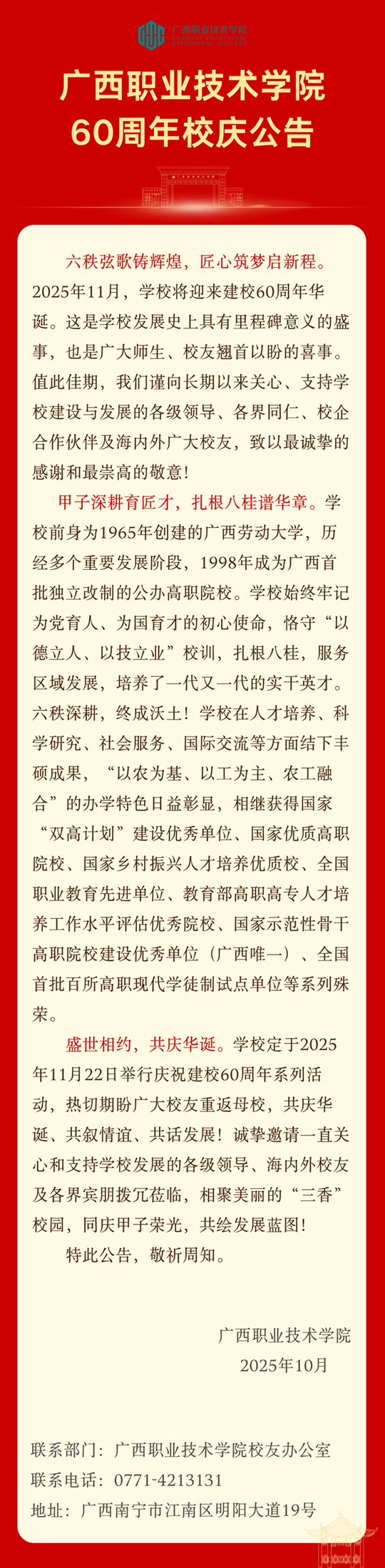 廣西職業(yè)技術(shù)學(xué)院60周年校慶公告