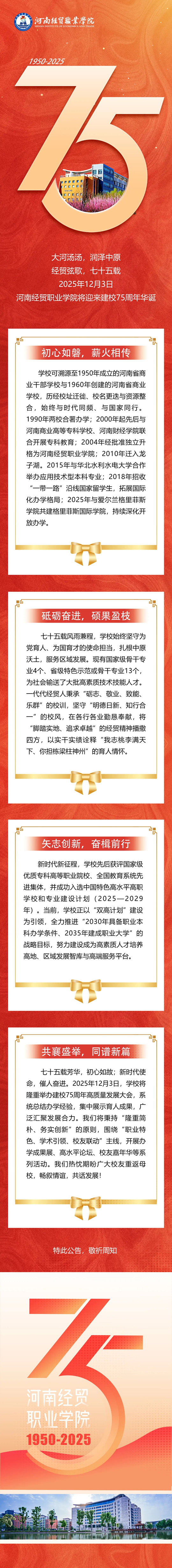 河南經(jīng)貿(mào)職業(yè)學(xué)院建校75周年發(fā)展大會公告