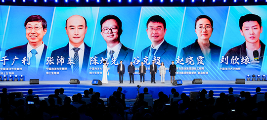 中國海洋大學(xué)教授于廣利、張沛東、陳旭光,青年教師劉欣緣與中國船舶集團青島北海造船有限公司副總經(jīng)理谷克超,青島國信集團副總工程師、海洋集團副總經(jīng)理趙曉霞共同演繹“海洋超能力”。