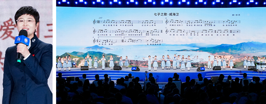 李翠翠(左)和小學(xué)生們再現(xiàn)聞一多筆下的《七子之歌·威海衛(wèi)》