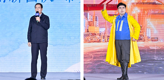 山東省港口集團高級別專家、首席科學(xué)家,青島港“連鋼創(chuàng)新團隊”帶頭人張連鋼與青島市京劇院一級演員蘇旭以情景講述與現(xiàn)代京劇融合方式展現(xiàn)“東方大港”魅力。