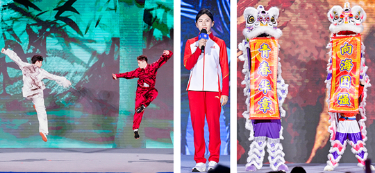 劉德文、紀(jì)豪(左),張明煜(中),臨沂大學(xué)龍獅隊帶來“青春有我”的澎湃活力