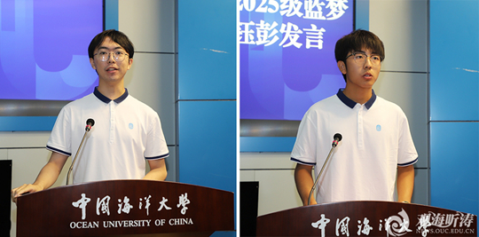 高年級學生代表、崇本學院2023級魏子泰分享成長經(jīng)驗,建議新生打牢基礎(chǔ),積極開展科研訓練,拓寬國際視野,勇敢探索未知。新生代表、2025級藍夢拔尖人才實驗班曹鈺彭表達了對未來的期待,希望能在崇本大家庭里,以夢為馬,不負韶華,努力成長為胸懷藍色夢想、堪當時代重任的優(yōu)秀海洋人才。