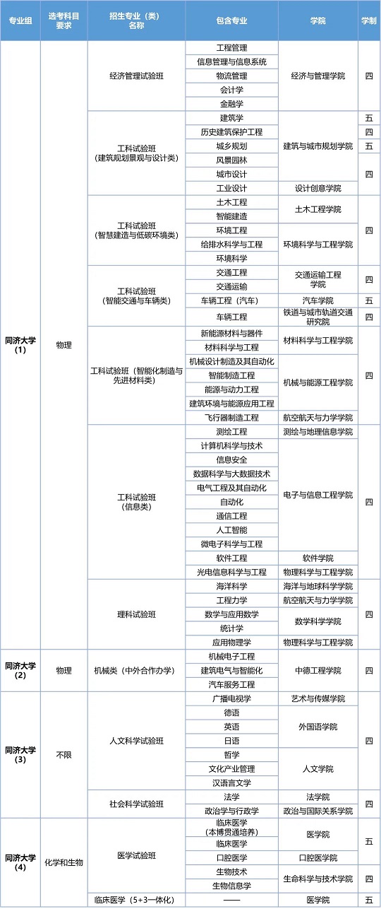 附件:同濟大學綜合評價批次招生院校專業(yè)組及科目要求
