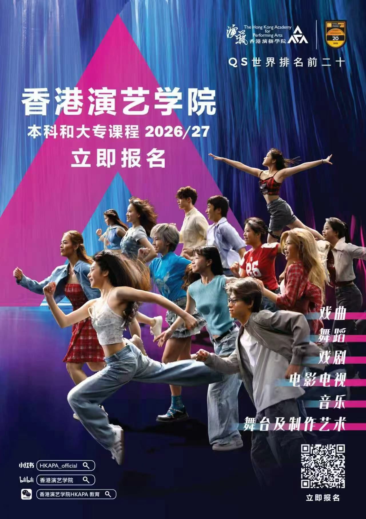 香港演藝學(xué)院通過高考在內(nèi)地招生,為使考生更加了解學(xué)校內(nèi)地招生政策與藝術(shù)教育特色,學(xué)校已公布2026-2027學(xué)年《學(xué)士及基礎(chǔ)文憑課程內(nèi)地招生簡章》及宣傳海報,考生和家長可瀏覽以下內(nèi)容了解更多信息。