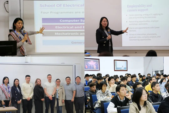 此前,10月23日晚,謝菲爾德大學(xué)電子與電氣工程學(xué)院褚曉理教授、管理學(xué)院尹淑興教授作升學(xué)專題講座,國際招生高級經(jīng)理Miriam Brown,本科招生主管Dave Broomby,中國項目經(jīng)理、全球合作事務(wù)負責(zé)人唐煜煜,以及100余名學(xué)生到場聆聽。