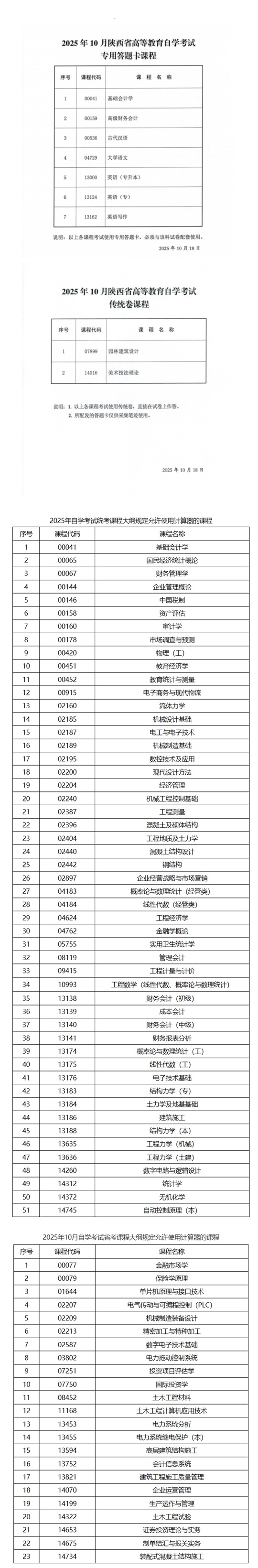 | 2025年10月陜西省自學(xué)考試專用答題卡等課程信息公布 |