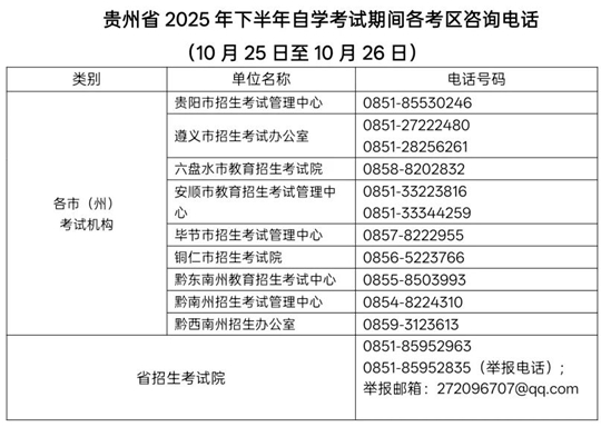 | 貴州省2025年下半年高等教育自學考試考前提示 |