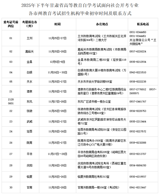 | 2025年下半年甘肅省高等教育自學考試面向社會開考專業(yè)畢業(yè)初審公告 |