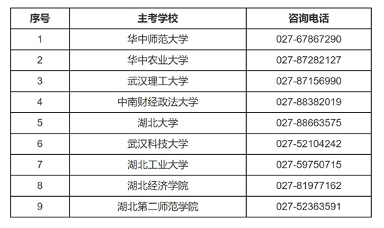 面向社會(huì)開(kāi)考的主考學(xué)校及咨詢(xún)電話如下: