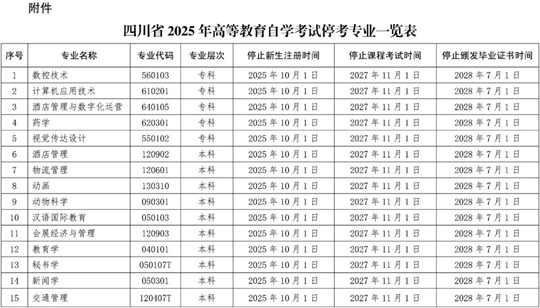 附件:四川省2025年高等教育自學(xué)考試?紝I(yè)一覽表