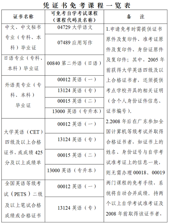 | 廣東省高等教育自學(xué)考試免考課程規(guī)定 |